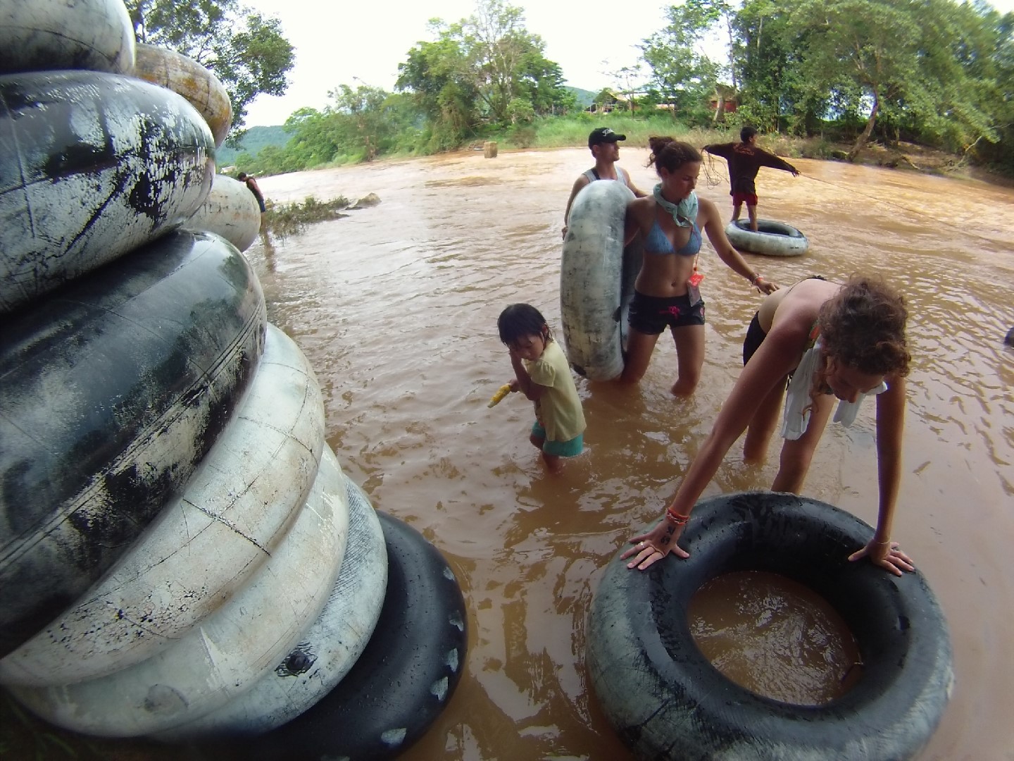 Like I said in the last post. We came to Vang Vieng to go tubing but there is more to Vang Vieng then just tubing, about that later more. The second day we rented our tubes and got in a tuk tuk who drove us to the dropoff point where we could get in the Mekong river and float down stream to the bars. There used to be around 30 or more bars alongside the Mekong river but because of the many incedents with drunk and drugged up people, the Lao goverment decided to close it down and allow 3 bars to stay open.